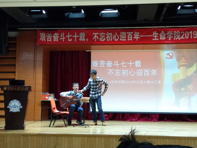 增进支部凝聚力,展示支部风采,2019年12月10日晚,生命学院 “艰苦奋斗七十载,不忘初心迎百年”2019年支部大舞台汇演在活动中心201成功举办。学院辅导员佟宇佳老师和学院本科生参加了本次活动。