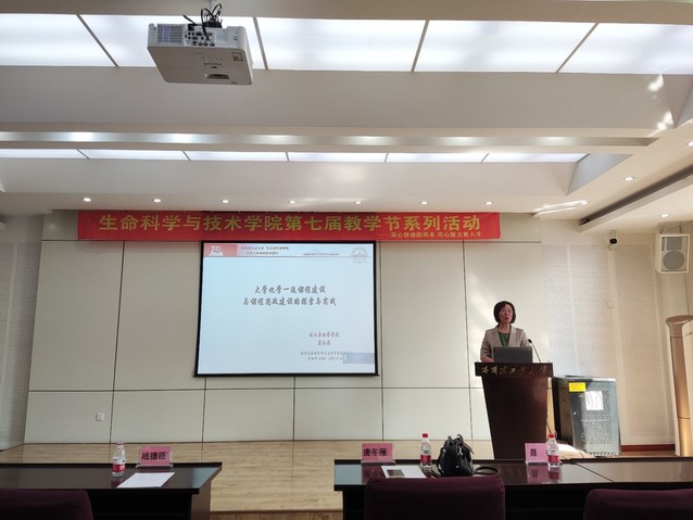 2023年5月26日下午14:00,为推进我院教育教学改革,加强我院一流课程建设,提升教师教学水平,生命学院第七届教学节一流课程建设讨论会在一区活动中心326学术报告厅举行,生命学院教学及实验教师参加了线下大会,本次会议特邀了我校国家教学名师战德臣教授及校教学带头人化工与化学学院唐冬雁教授作相关报告,由生命学院副院长聂桓教授主持。